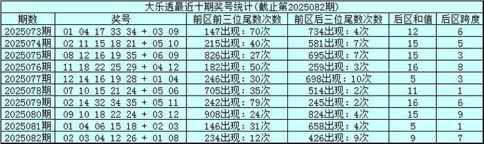 体彩大乐透第25082期奖号开出:02 03 04 12 26+01 08嘉兴市顺保车衣有限公司,前区奖号大小比为1:4,012路比为2:1:2,奇偶比为1:4,后区号码和值为9,跨度为7。