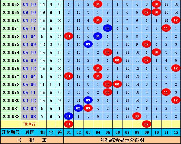 后区号码分析:上期后区开出奖号01 08,和值为9,跨度为7,本期后区参考号码01、03、07、09、10。