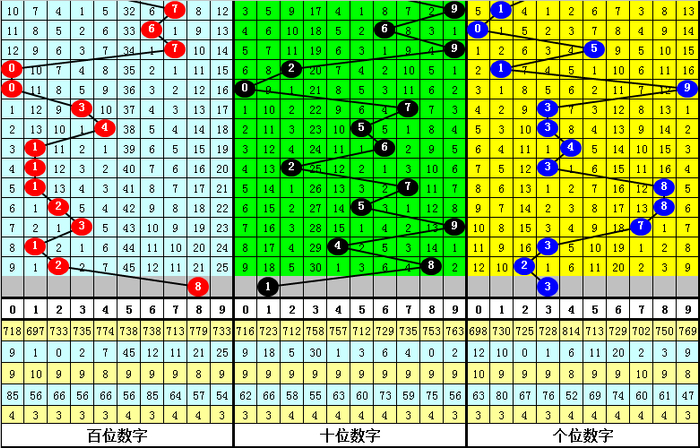 其中,百位奇偶比为3:5,大小比为5:3,本期百位一码参考8。