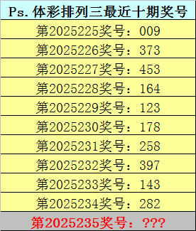 开奖回来:体彩摆设三第2025234期奖号为:282,类型:组三。