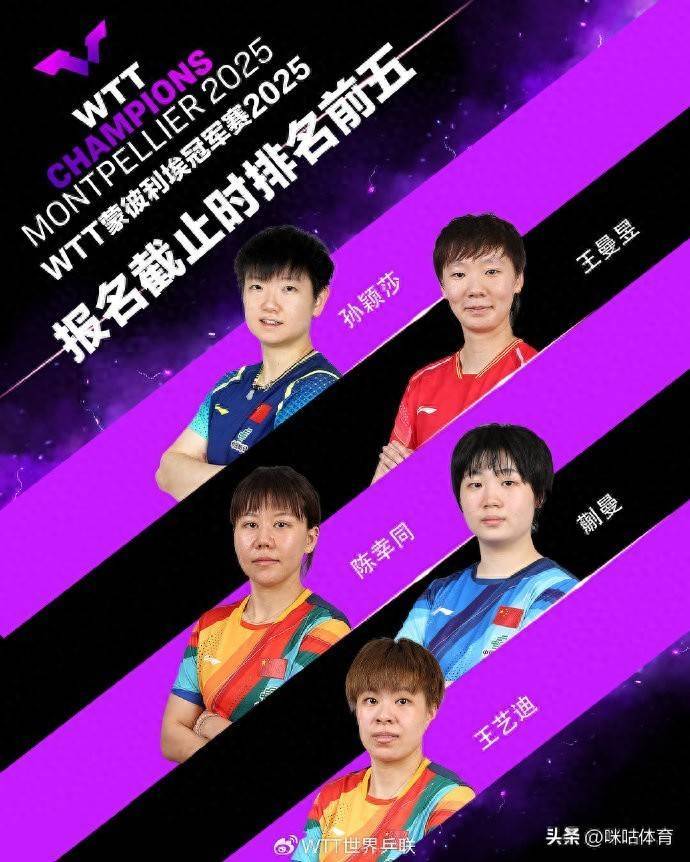9月19日嘉兴市顺保车衣有限公司,WTT冠军赛蒙彼利埃站,中国队公布了参赛名单!