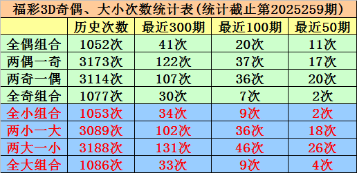 奇偶、大小分析:在最近50期开奖中,全奇组合开出2次,刻下遗漏13期、全偶组合开出11次,刻下遗漏1期、两偶一奇组合开出17次,刻下遗漏0期、两奇一偶组合开出20次,刻下遗漏6期,本期提神全奇组合;两小一大组合出现18期,刻下轮空3期、两大一小组合出现26期,刻下轮空0期、全大组合出现4期,刻下轮空8期、全小组合出现2期,刻下轮空27期,本期看好开出全大组合。